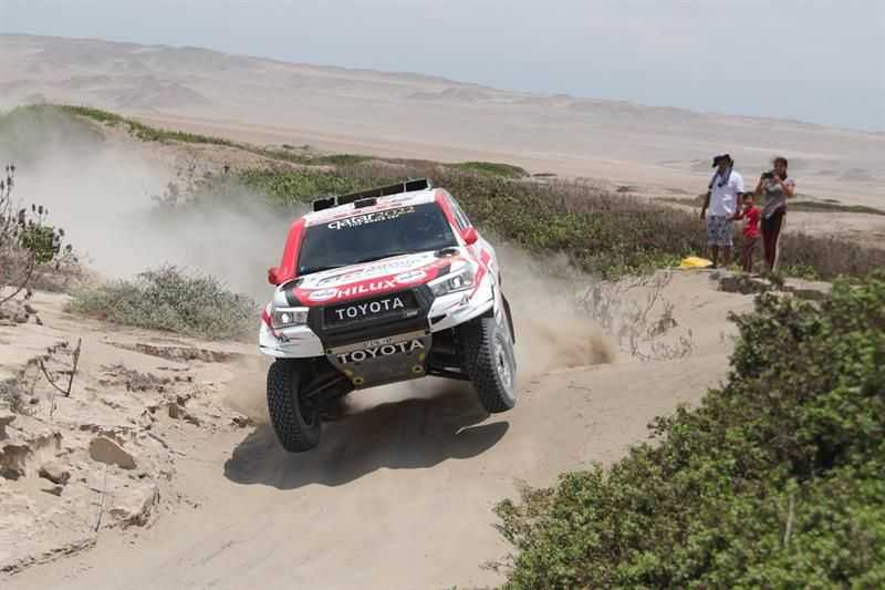 Al-Attiyah continúa líder de la carrera con 8 minutos y 55 segundos sobre Peterhansel, al que esta vez le tocaba abrir pista porque era el primero de los coches en partir en esta etapa, disputada entre Arequipa y Tacna, en Perú, con 664 kilómetros, de los que 405 eran cronometrados.