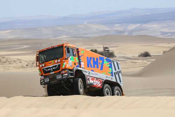 El KH-7 Epsilon Team es el líder de las clasificaciones de Producción y 6×6 del Rally Dakar después de la tercera etapa, que ha discurrido entre San Juan de Marcona y Arequipa, con 798 kilómetros en total y una especial de 331. Jordi Juvanteny y sus compañeros José Luis Criado y Xavi Domènech han mantenido un buen ritmo a pesar de las alternancias del terreno y las dificultades de navegación. También han perdido tiempo asistiendo al equipo oficial Iveco y por un pinchazo hacia el final, pero han completado la jornada en la 24ª posición y ocupan también el 22º puesto en la general de camiones.