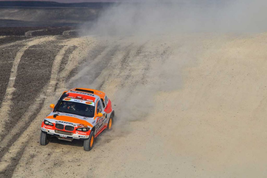 “Hemos pasado un día realmente difícil. Nos enganchamos en el fesh-fesh al adelantarnos un camión y, como consecuencia de ello, tuvimos un problema eléctrico que Txema Villalobos logró localizar y solucionar en 40 minutos. Un poco más adelante, se nos averió el limpiaparabrisas y también tuvimos que parar a arreglarlo”, explicaba el piloto ilerdense.