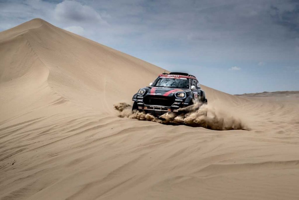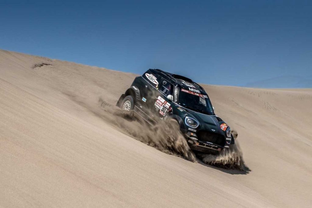 Joan “Nani” Roma (ESP) y su copiloto Alex Haro (ESP) en su MINI John Cooper Works Rally fueron la única amenaza para Peterhansel desde el inicio de la etapa. Roma incluso lideró en el tercer waypoint, pero acabó segundo a 4 minutos y 33 segundos de Peterhansel.
