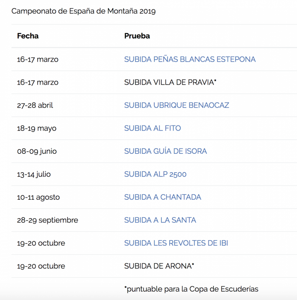 El certamen arrancará del 16 al 17 de marzo con la Subida Peñas Blancas en Estepona, finalizando siete meses después en Tenerife.
