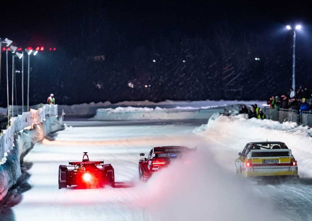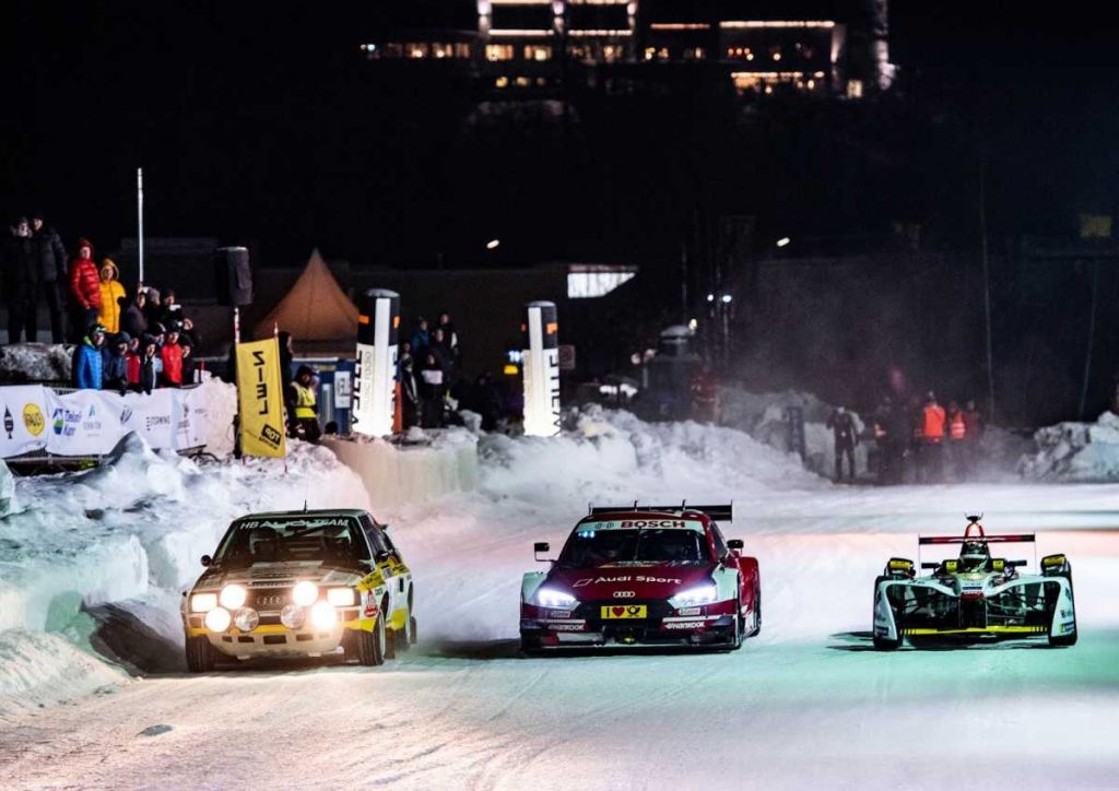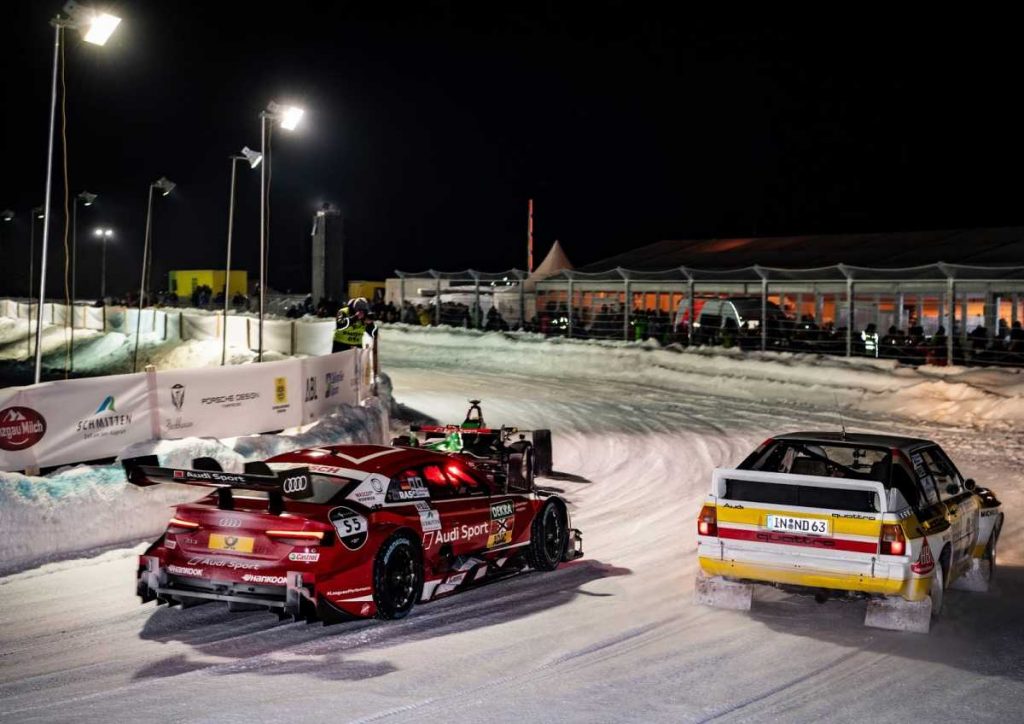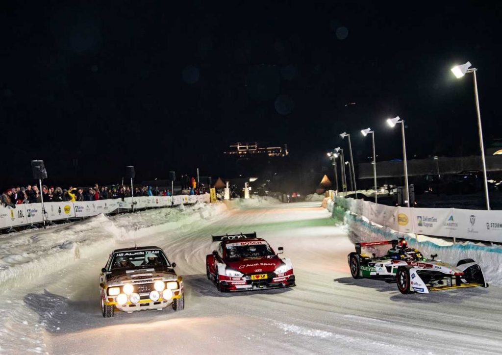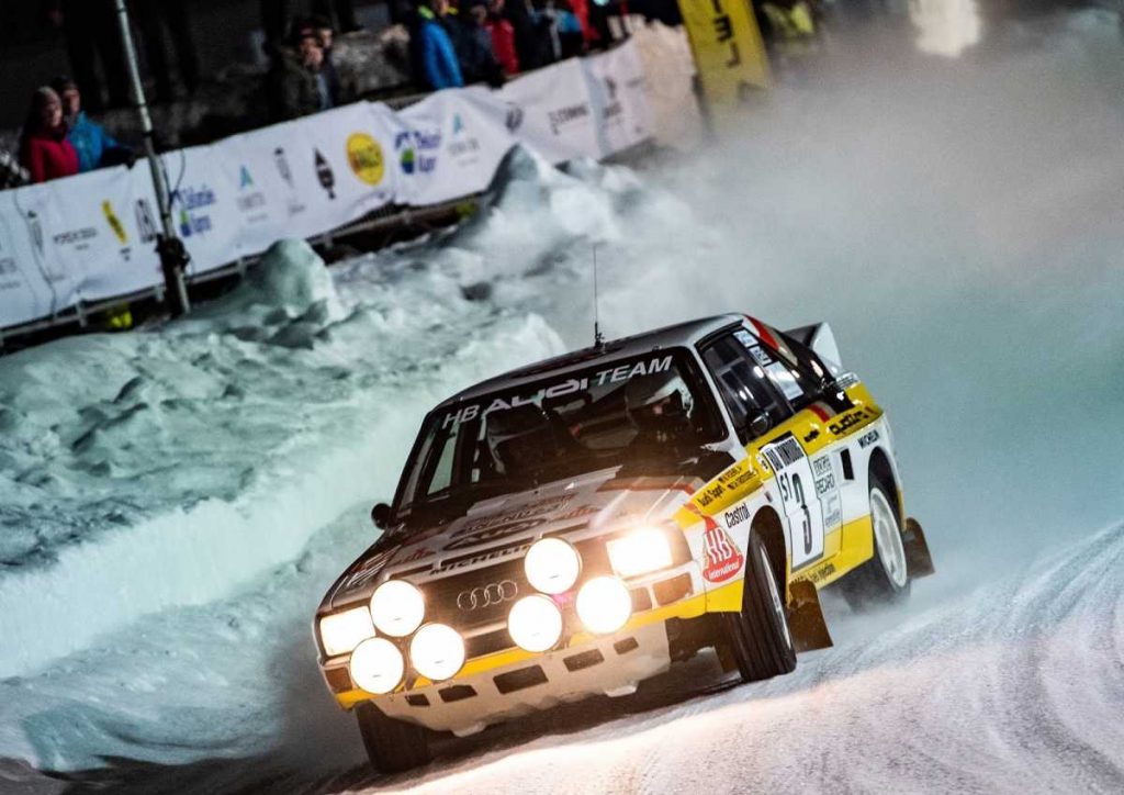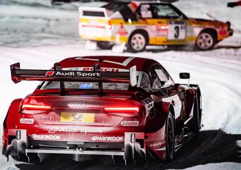 La espectacular puesta en escena sobre la nieve tuvo un invitado de excepción: el Campeón del Mundo de Rallies Walter Röhrl, a los mandos del una unidad del legendario Audi Sport quattro.