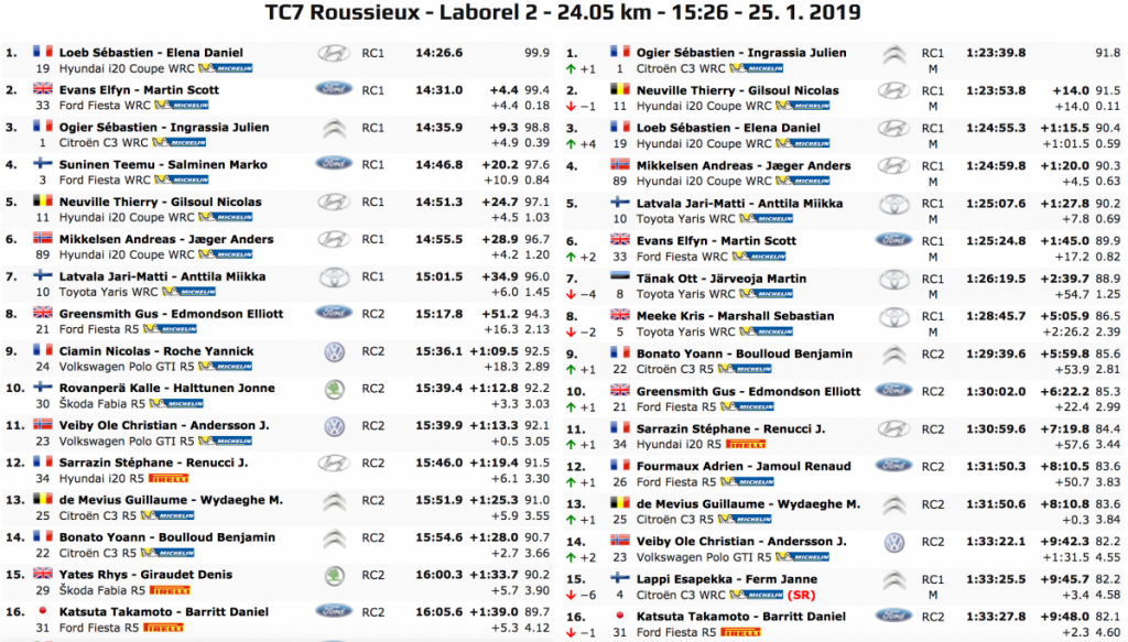 El belga cayó por debajo de los 20 segundos tras un rebasamiento en el primero de la tarde, cuando las condiciones lo permitían, y Ogier consiguió una ventaja de 14,0 segundos. Pero el piloto del Hyundai i20 tomó represalias para ganar la prueba final y acercarse.