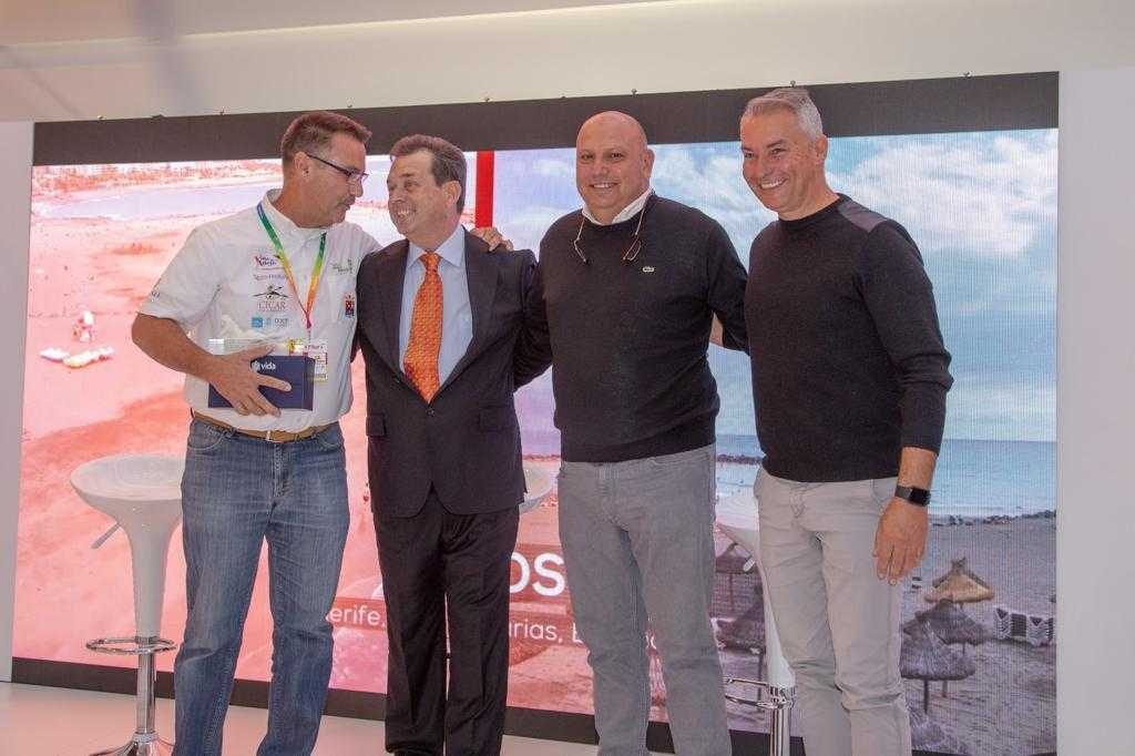La Escudería Villa de Adeje, recibió en la jornada del viernes la invitación y reconocimiento de una de las empresas con más proyección en la isla de Tenerife, Expo Vida. En un stand de los más espectaculares en FITUR, se aprovechó para presentar nuevamente nuestro cartel y recibir de manos de José Luis Cerveró, una “Evva” que recogió nuestro presidente de la Escudería Villa de Adeje, Poli Delgado, con gran entusiasmo y agradeciendo muchísimo el apoyo y confianza de Expo Vida que se ha convertido este año en uno de los principales patrocinadores y que incluso se ha ofrecido para ser parte del equipo organizativo.