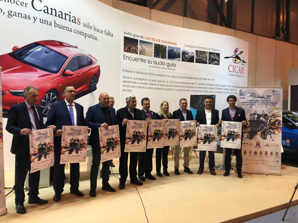 La jornada del jueves (segunda de la Feria) fue la escogida por la Escudería Villa de Adeje y el Excmo. Ayuntamiento de la Villa de Adeje para presentar desde el magnífico stand de CICAR del Grupo Empresarial Cabrera Medina, un cartel elaborado por D. Javier Martin, director de Marketing del grupo y que ha sorprendido para bien a muchos.