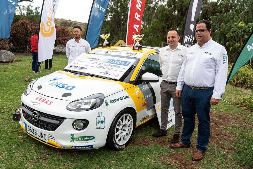 Cristóbal Bravo de Laguna, gerente de Orvecame Gran Canaria ejerció de anfitrión en este acto de entrega de galardones, al cual también acudieron los diferentes patrocinadores, como; Dolores Saavedra, directora de imagen de DISA, Paul Perdomo, en representación de la empresa Ahembo, Josué San Roque, en representación de Naviera Armas, Marcos Cabrera, en representación de Aguas de Teror, Miguel Ángel Toledo, presidente de la Federación de Las Palmas de Automovilismo y Benito Rodríguez, presidente de la Federación Canaria de Automovilismo.