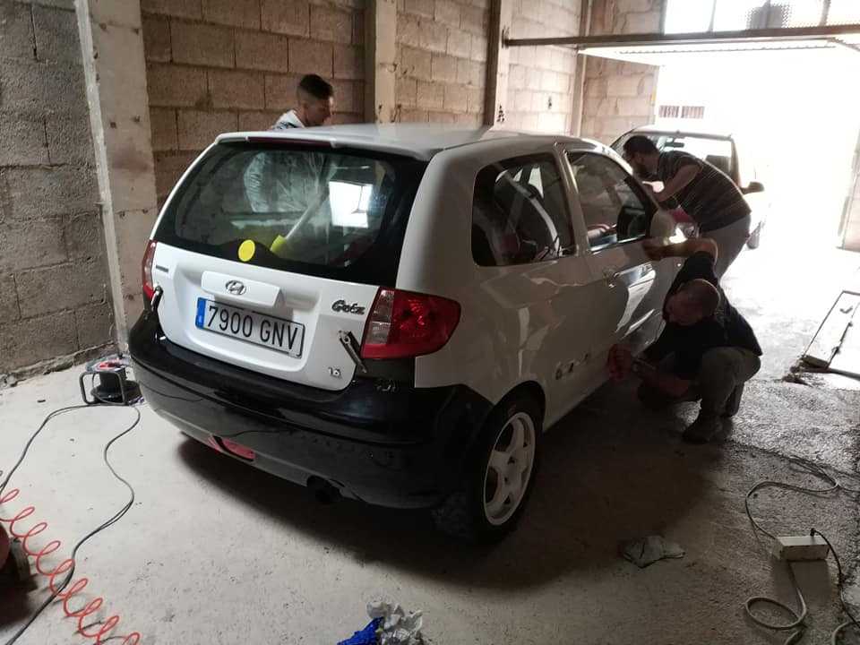 Semanas atrás José Manuel Rodríguez vendía su Kia y compraba su nuevo Hyundai. Este domingo empezó a quitarle la rotulación de cara a pintar y dejar la montura con la que competirá en este 2019 en óptimas condiciones.