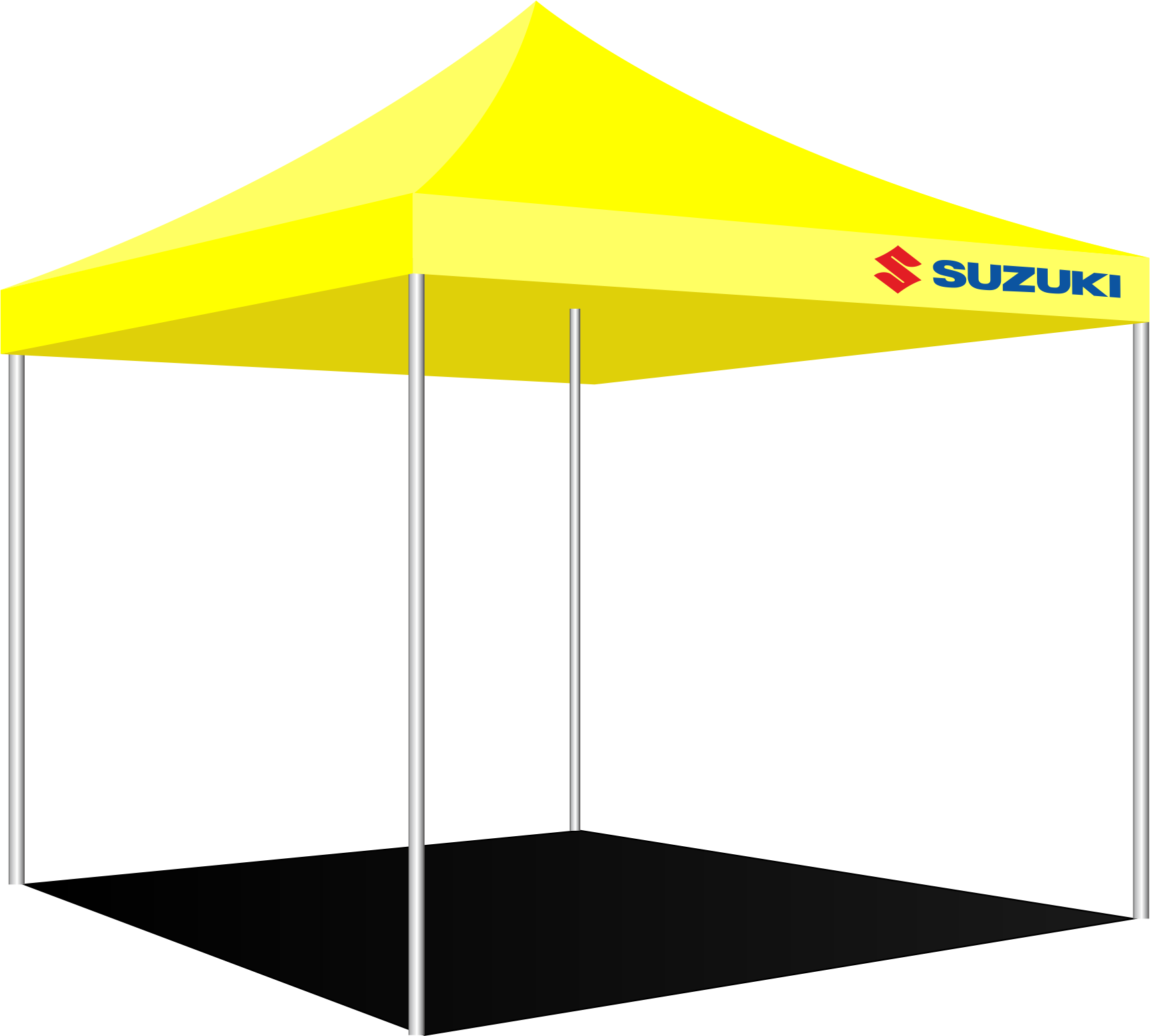 6º – También se entregará una carpa para asistencia, una lona de suelo y dos lonas/banner publicitarias para poner en la zona frontal de la zona de asistencia.