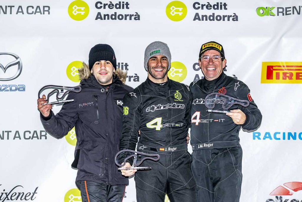 José Roger Chalmeta nos comentó antes de subir al podio como ganador absoluto de la G3, que a punto estuvo de no poder participar en este meeting: Esta misma mañana hemos sacado el coche del taller después de cambiar el motor. Tuvimos el tiempo justo de desplazarnos al Circuit Andorra y pasar las perceptivas verificaciones previas a la carrera. Durante les entrenamientos libres hemos rodado el motor, para tenerlo en condiciones en el momento en que se empezaran a jugar puntos de cara el campeonato. Todo ha salido bien y hemos conseguido el pleno (50 puntos) además de subir, junto a mi padre, en el podio absoluto de esta G3.