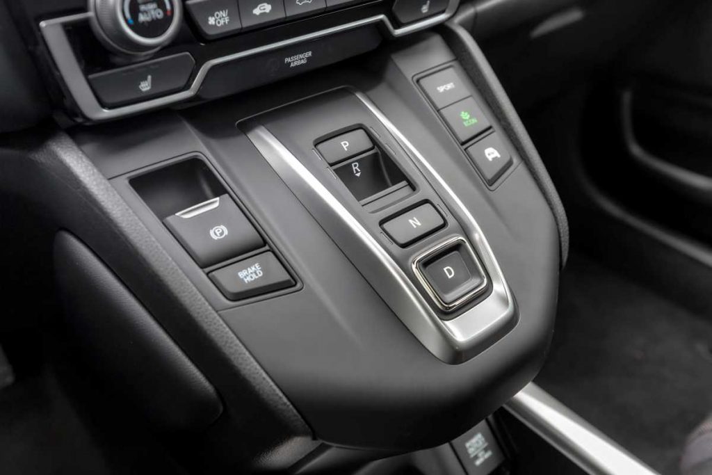 Los controles del selector de conducción del nuevo Honda CR-V Hybrid se encuentran en la consola central, con un diseño que emplea un selector de transmisión compacto similar a un pulsador, en lugar de la palanca convencional. Para seleccionar las funciones de conducción, aparcamiento y punto muerto sólo hay que pulsar un botón, mientras que la función de marcha atrás requiere tirar del pulsador. El modo “Sport”, que puede activarse a través del selector de conducción, permite una mayor respuesta del acelerador en el sistema híbrido. Si la batería cuenta con un nivel de carga suficiente, también se puede seleccionar el modo completamente eléctrico EV con tal sólo pulsar un botón, logrando una autonomía de 2 kms de conducción sin emisiones, según las condiciones de conducción y la carga de la batería.