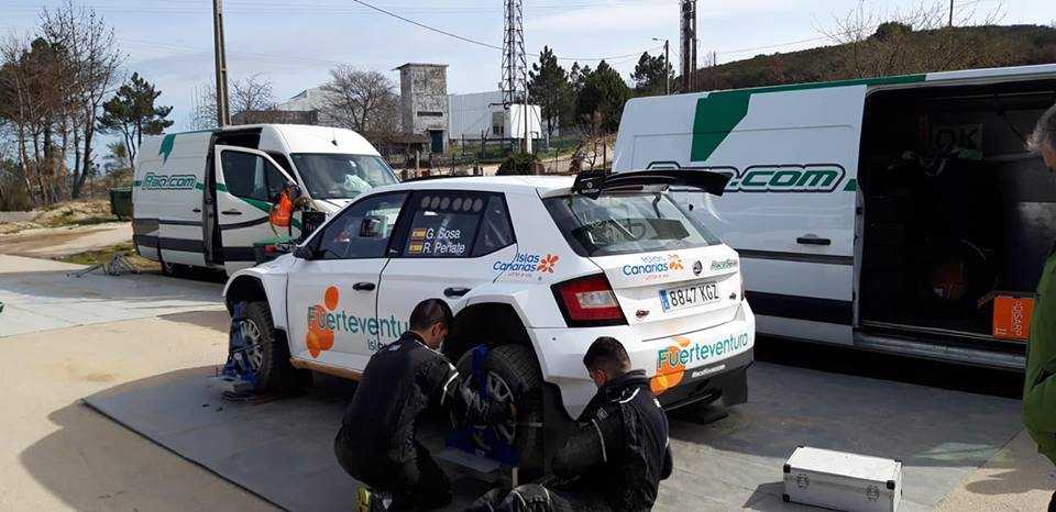 El majorero Gustavo Sosa y el grancanario Rogelio Peñate han probado este miércoles el Skoda Fabia R5 de RaceSeven con el que competirán este fin de semana en Portugal.