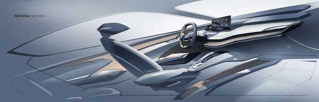 El panel de instrumentos consiste en dos niveles cuyas líneas y costuras decorativas se inspiran de la parte frontal del vehículo. La gran pantalla independiente parece flotar en el centro, por encima del panel de instrumentos, delante del cual hay un saliente para que la mano opere fácilmente la pantalla táctil. El volante también ha sido rediseñado, y ahora dispone de dos radios y de las letras mayúsculas «ŠKODA» en vez del tradicional logo de ŠKODA.