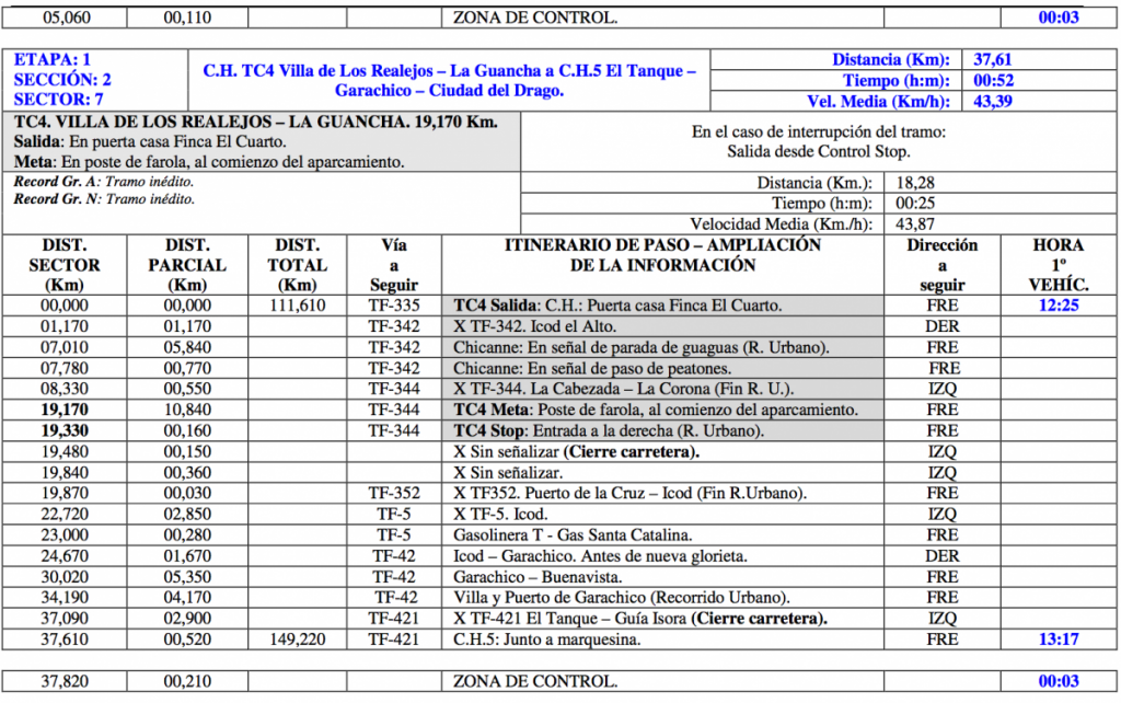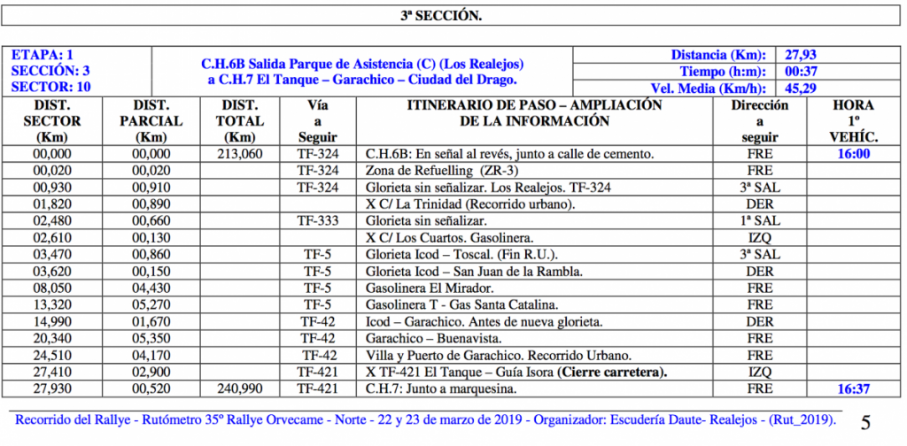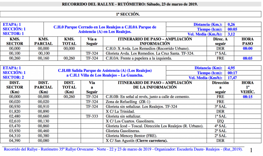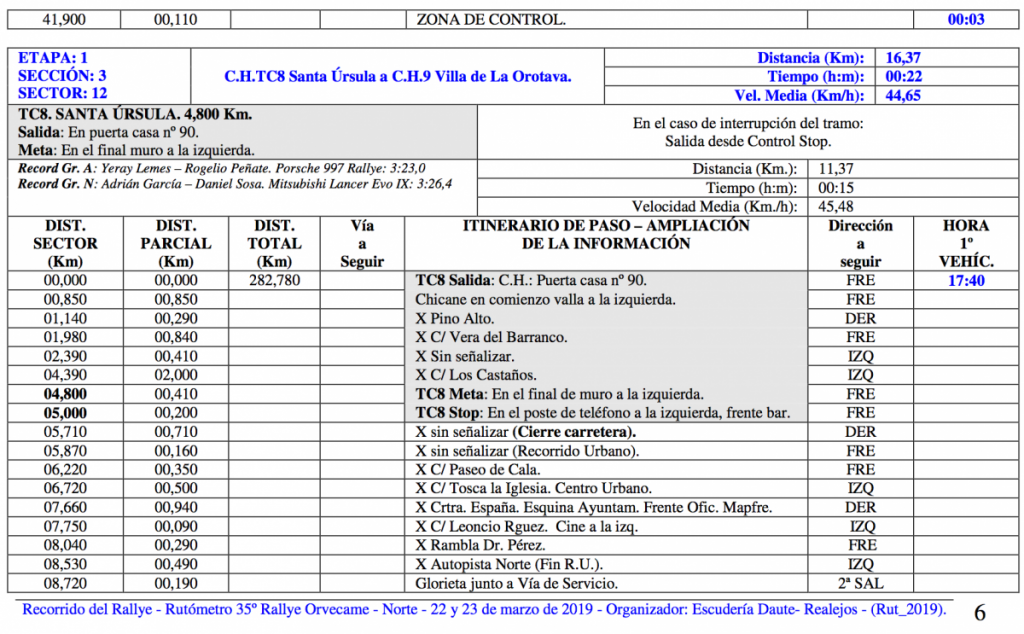 Publicamos el Rutómetro de la 35 edición del Rallye Orvecame Norte Trofeo Cicar (Tenerife).