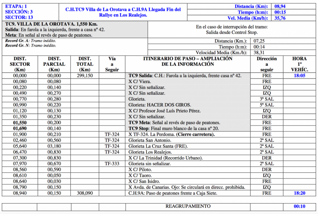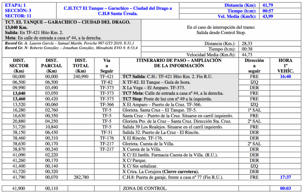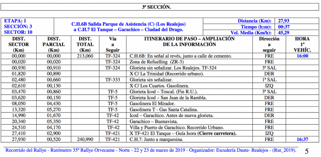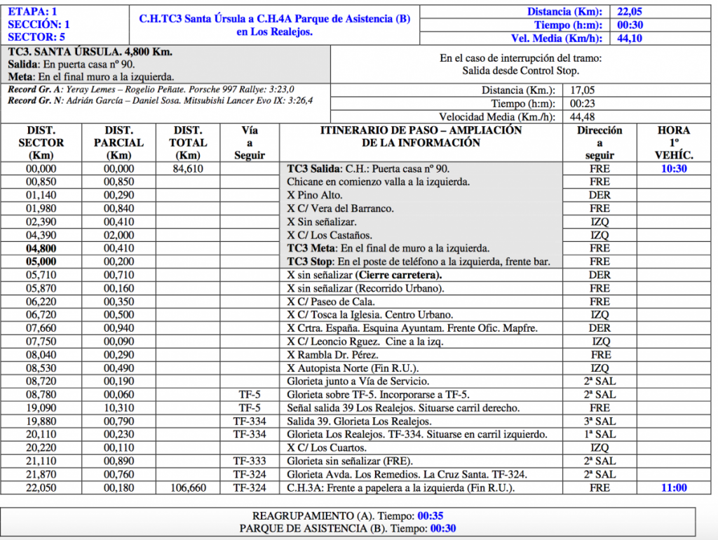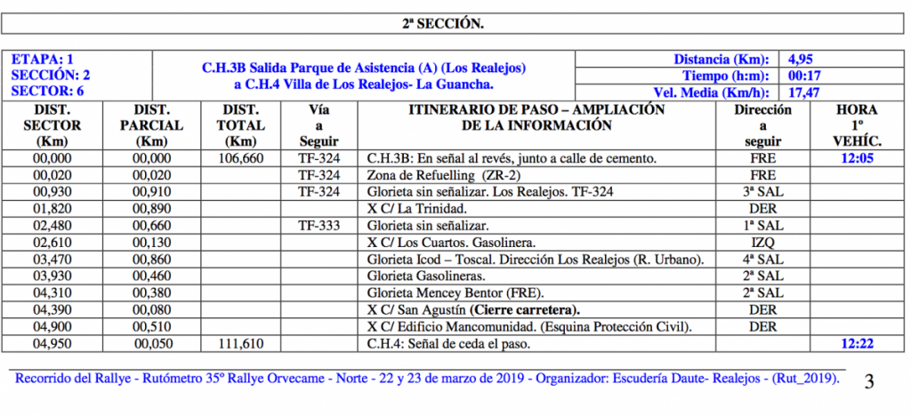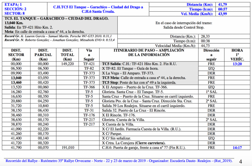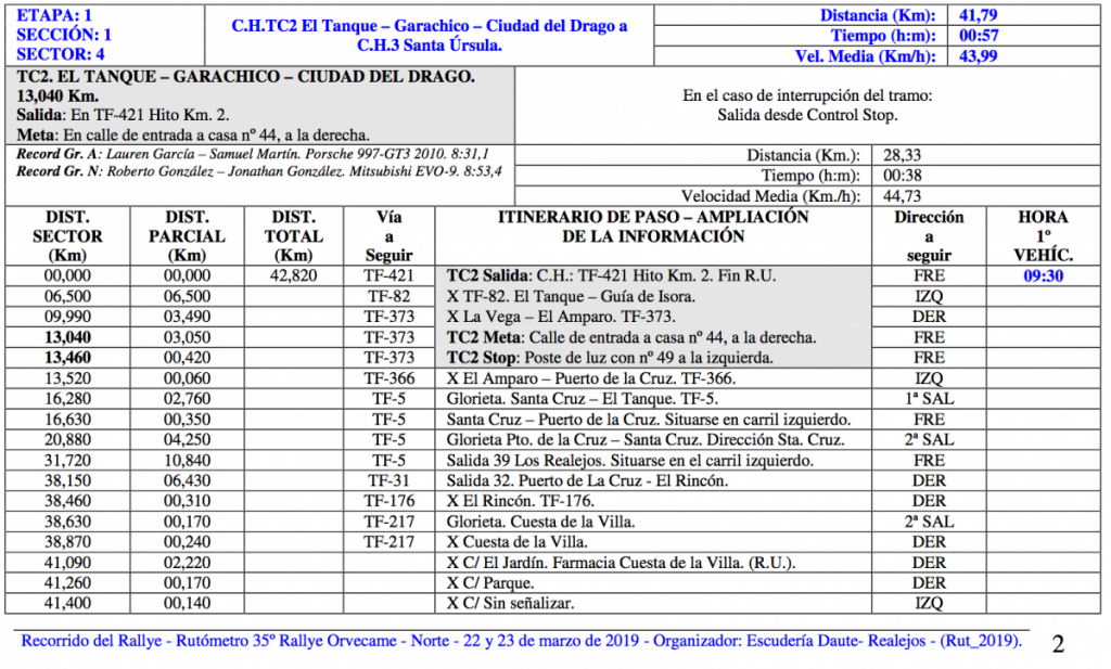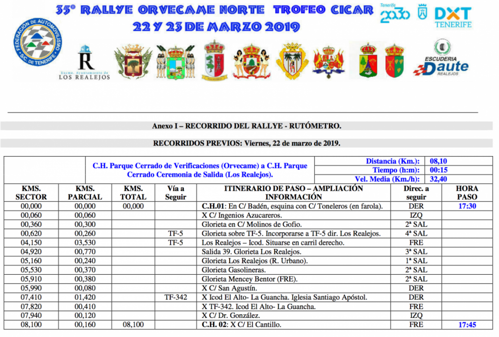 Publicamos el Rutómetro de la 35 edición del Rallye Orvecame Norte Trofeo Cicar (Tenerife).