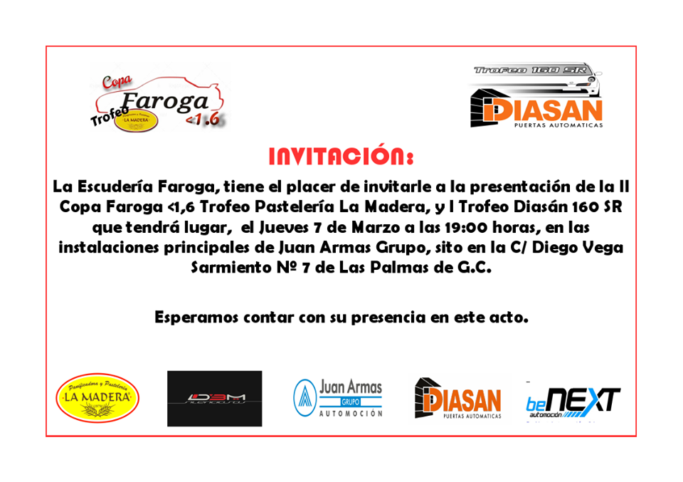 La Escudería Faroga presentará este próximo Jueves 7 de Marzo, a las 19:00 horas, las dos Copas que organizarán esta temporada 2019.