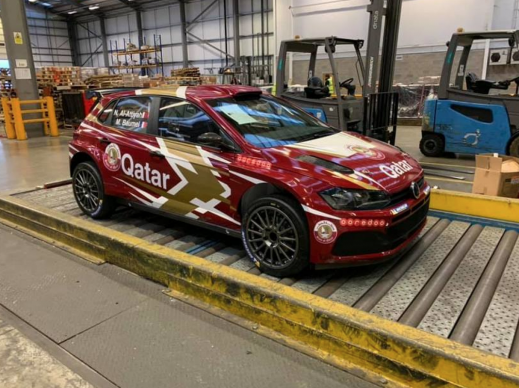 Habíamos visto un boceto pero ahora han transcendido las primeras fotos del VW Polo GTI R5 de Nasser Al-Attiyah en una zona de carga de un aeropuerto antes de emprender viaje para verlo correr en el Campeonato de Oriente Medio.
