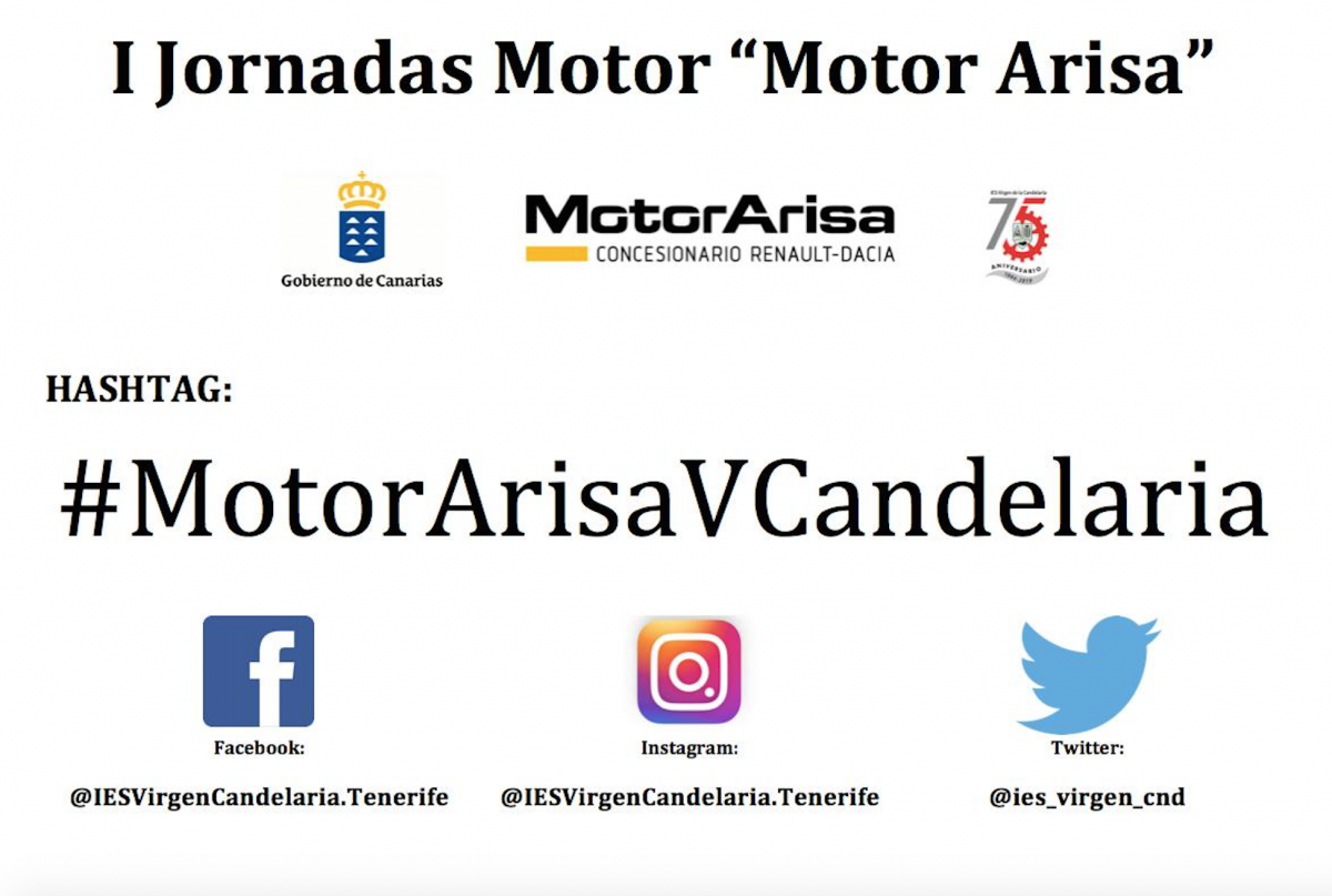 El IES Virgen de la Candelaria acogerá los próximos días miércoles 14 y jueves 15 de marzo, las I Jornadas del Motor “Motor Arisa”, acción formativa enmarcada en el proyecto de centro “Dinamiza” y que ofrece un formato dinámico donde se intercalan intervenciones y ponencias de comunicadores vinculados con el sector profesional del automóvil y con el automovilismo deportivo, al tiempo que se ofrece una exposición permanente de vehículos tanto turismos de última generación, aportados por Motor Arisa Concesionario Renault-Dacia, como vehículos de rallyes y vehículos clásicos.