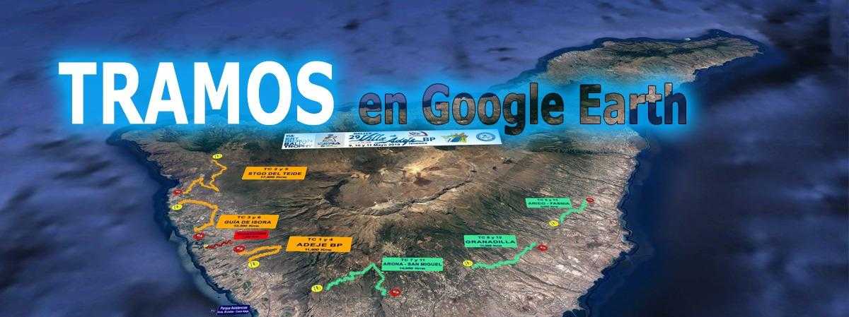 Desde el pie de la “home” se accede a la sección “TRAMOS EN GOOGLE EARTH” desde donde se puede descargar un fichero en formato KMZ con el recorrido del 29º Rallye Villa de Adeje, BP Tenerife – Trofeo CICAR, (#RallyeAdeje) que está compuesto por dos etapas y siete tramos a reconocer disputándose a doble pasada, totalizando catorce especiales de lucha contra el crono.