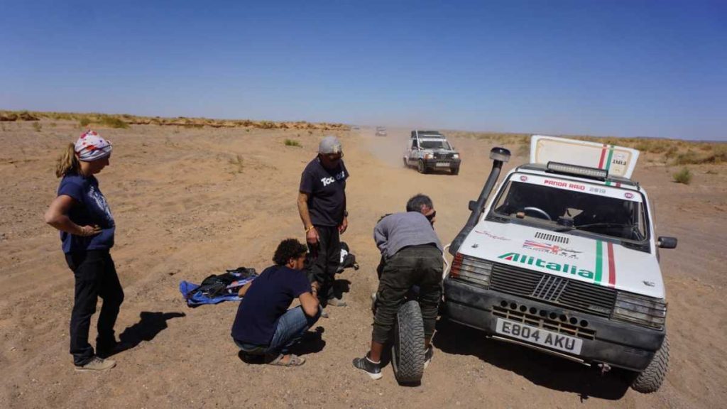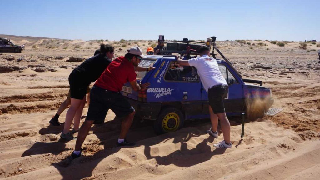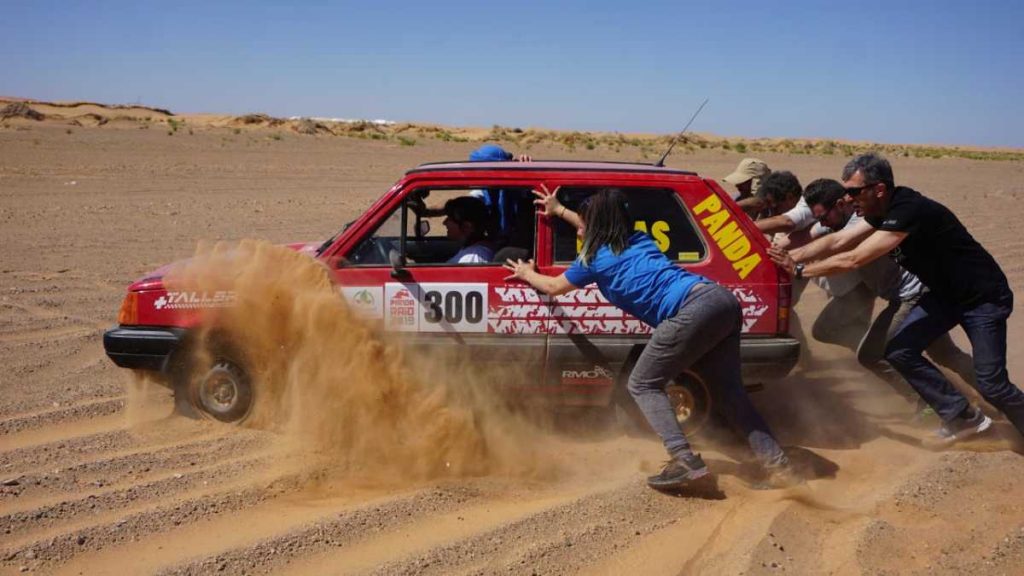 Arena, millones de kilos de arena, un abrasador sol y solidaridad y mucho apoyo entre los participantes, de lo contrario habría sido imposible superar el recorrido del Panda Raid en su cuarta etapa. Muchos se las prometían muy felices porque eran «solo» 166 kilómetros, pero hoy más que nunca el Panda Raid recordaba a unas de las grandes etapas del legendario París-Dakar africano. Desde el helicóptero, los cámaras y los responsables de la organización no daban crédito al casi dantesco espectáculo que acontecía en tierra.