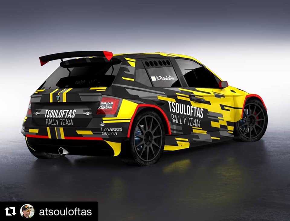 El chipriota Alex Tsouloftas, que correrá el ERC 2019, ha ‘vestido’ de amarillo el Skoda Fabia R5 con el que arrancará esta temporada 2019 en el certamen continental en Portugal, en el Raly de Azores.