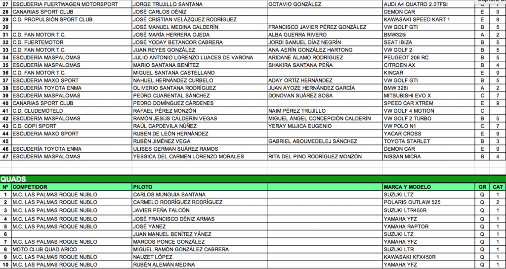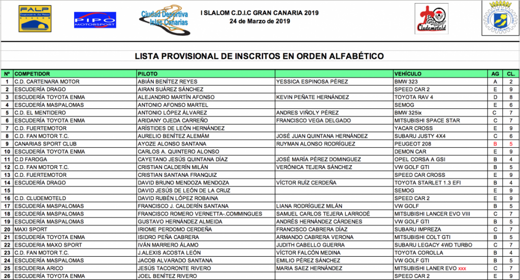 – El Club Deportivo Cludemoteld entrega una relación de inscritos muy interesante de la primera prueba valedera para el Campeonato Provincial de Slalom de Las Palmas.