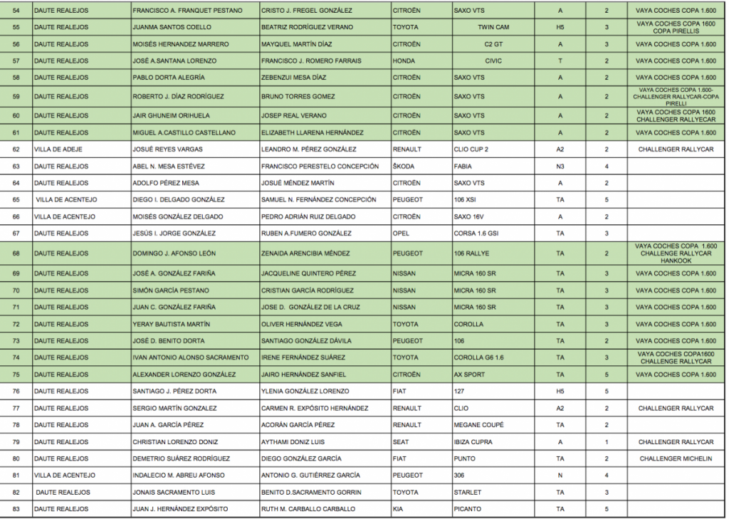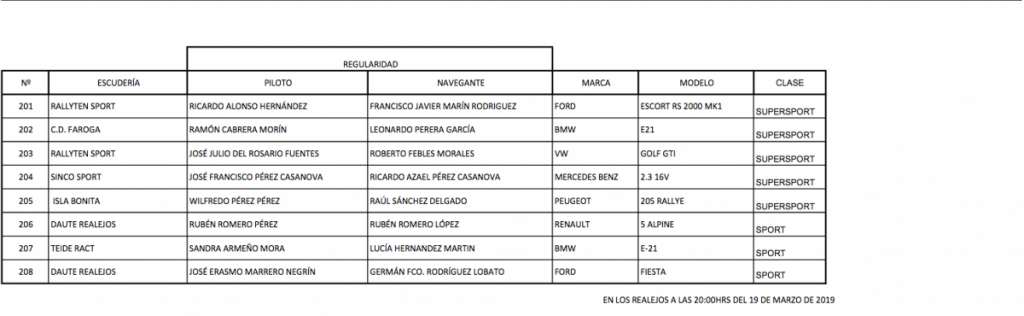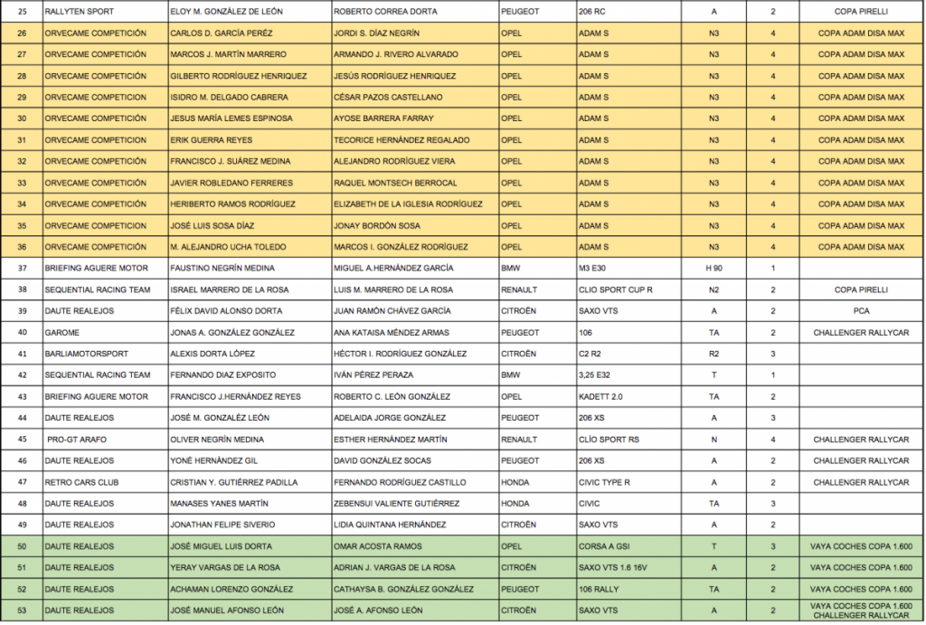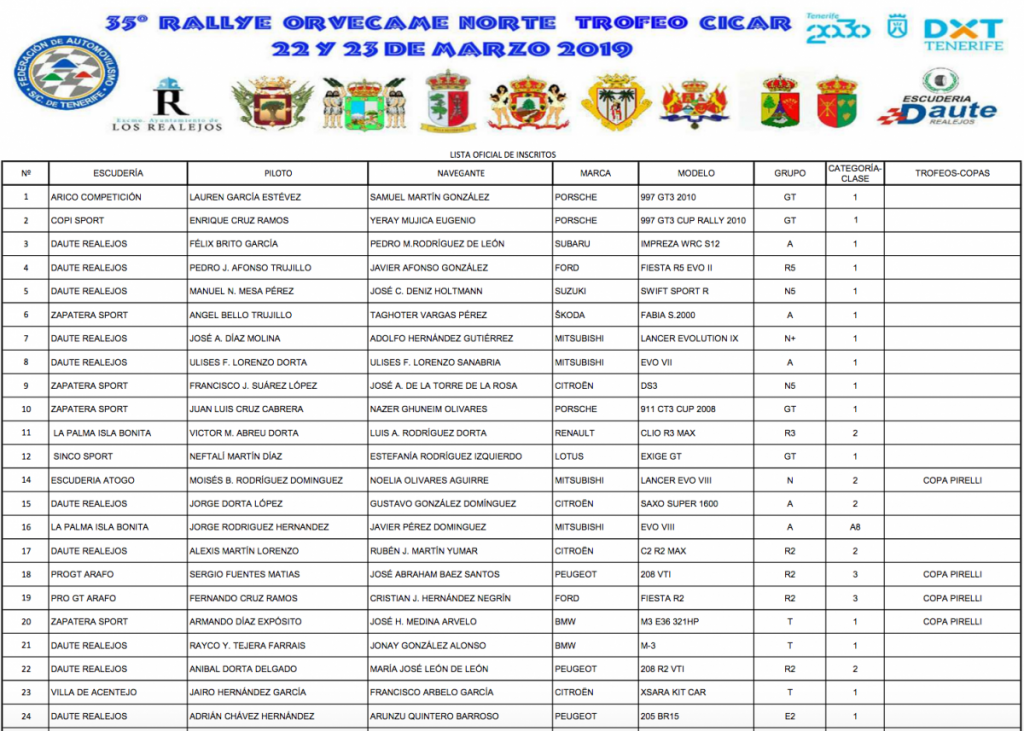 Solo de espectacular se puede catalogar la lista de inscritos del Rally Norte con la presencia de los Porsche GT de Lauren García, Enrique Cruz y Juan Luis Cruz; el Subaru Impreza WRC de Félix Brito; el Ford Fiesta R5 de Pedro Javier Afonso…