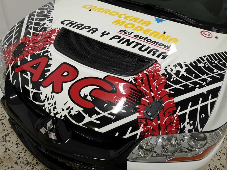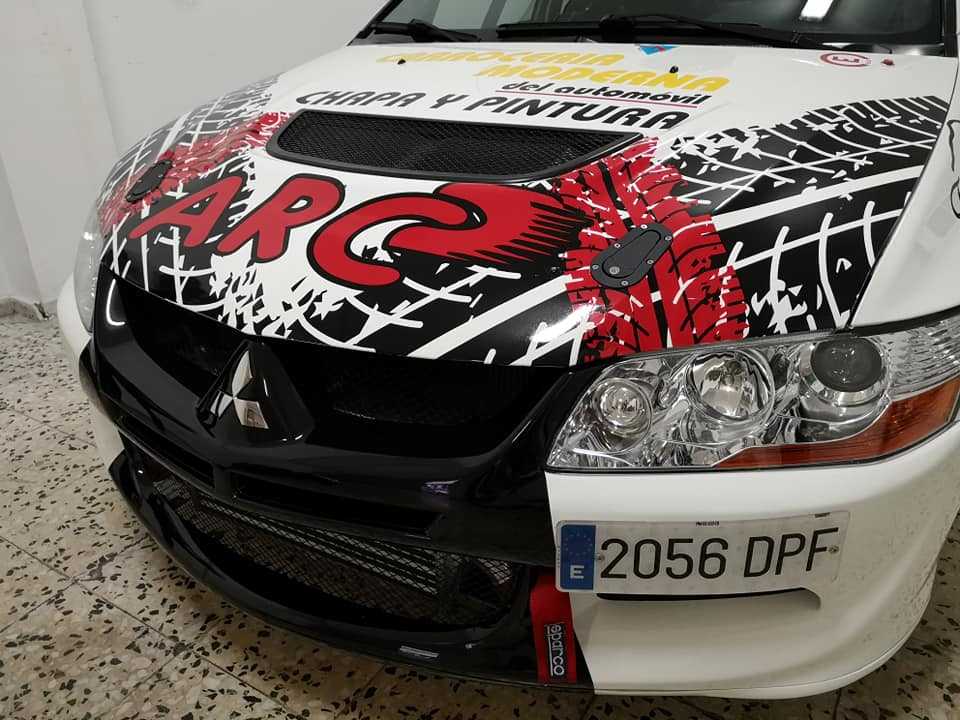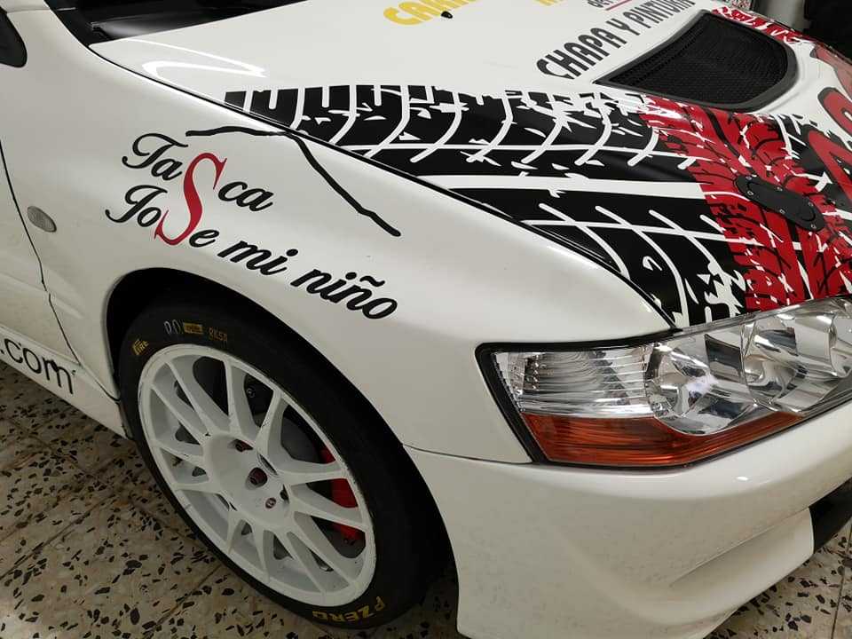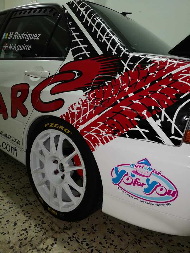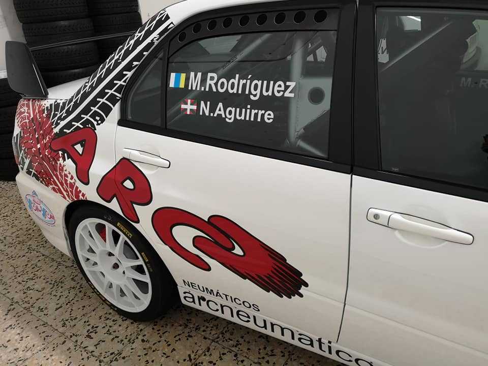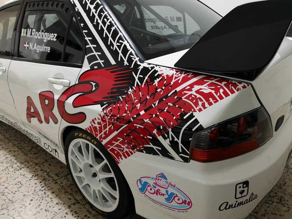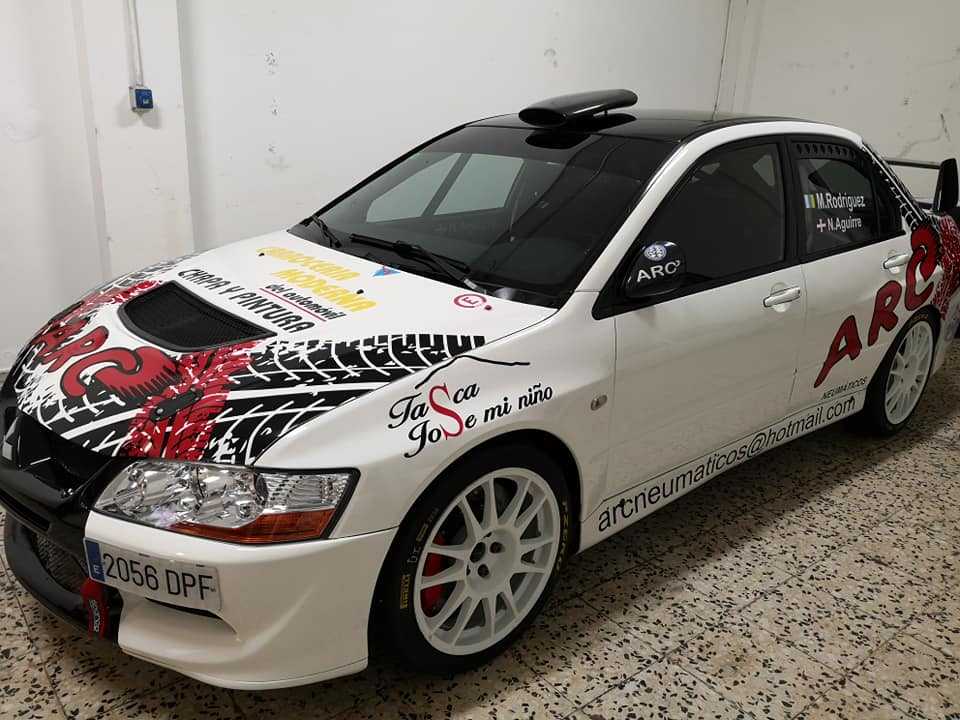 El equipo tinerfeño compuesto por Moisés Rodríguez y Noelia Aguirre estrenan rotulación en su Mitsubishi Lancer Evo VIII.
