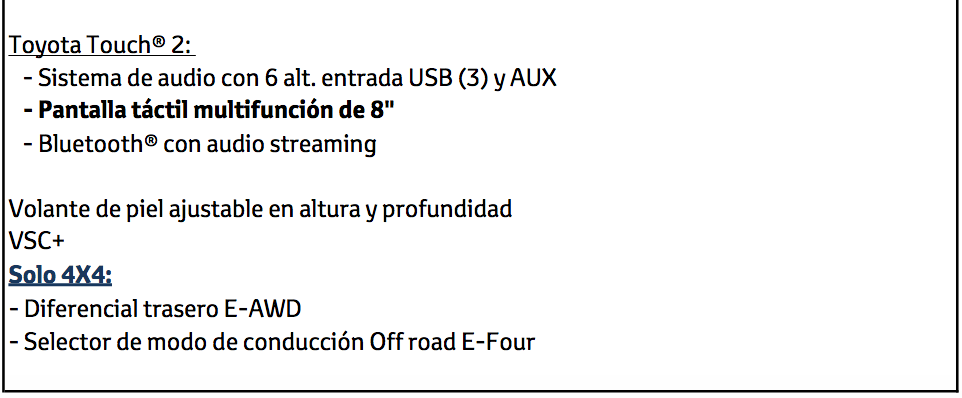 Incorpora el renovado sistema Toyota Safety Sense 2.0, que no solo te avisa de posibles peligros, además te ayuda a reaccionar ante ellos.