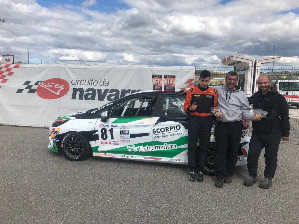 El chinato Miguel Grande del Extremadura Rallye Team ha tenido un inmejorable comienzo en el Campeonato de España de Resistencia en la Copa Pura Pasión con sendos primeros puestos en las dos carreras disputadas hoy sobre el Circuito de Navarra. Además, Grande conseguía dominar en la jornada de sábado tanto los entrenamientos libres, como la tanda de entrenamiento cronometrado que le permitían hoy salir en primera posición en las dos carreras.