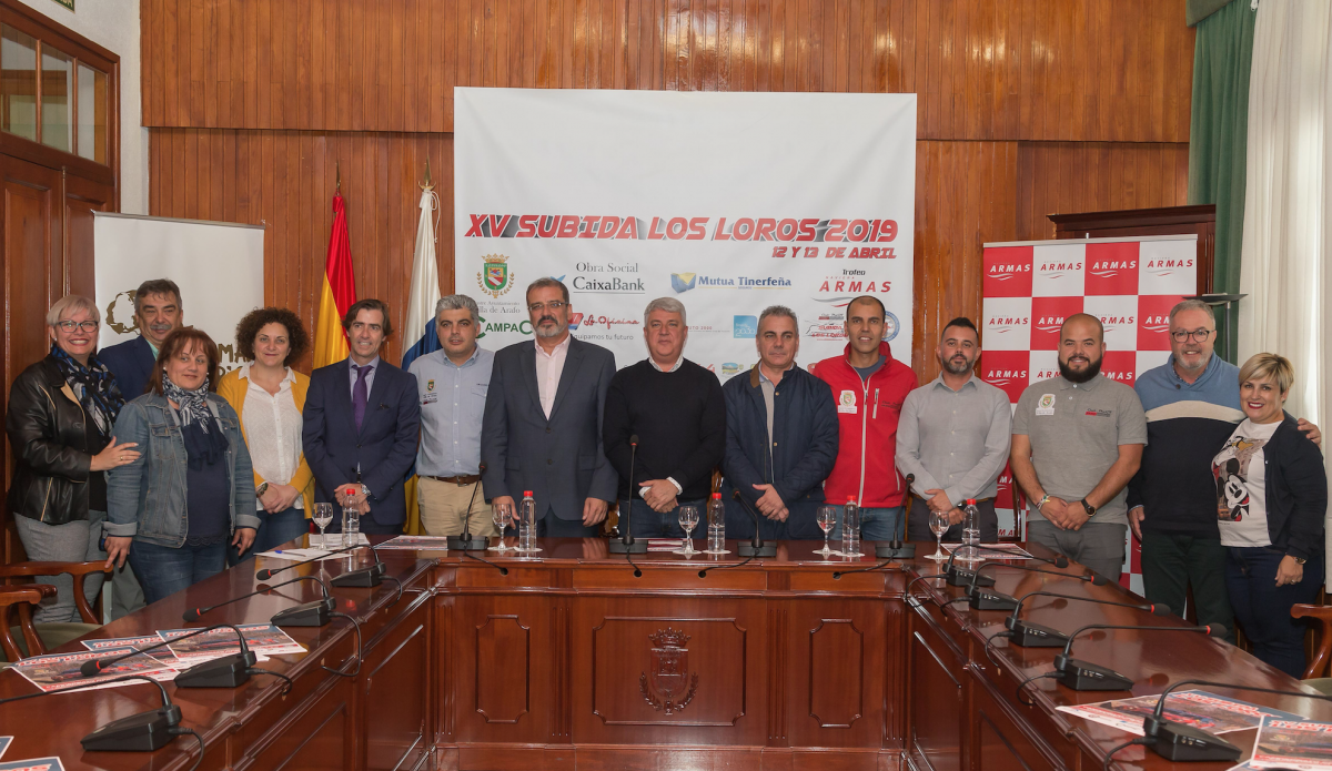 La XV Subida Los Loros – Trofeo Naviera Armas marcha camino de esa fecha que tanto están deseando los aficionados. El próximo fin de semana se disputará la cuarta edición consecutiva a cargo del Club ProGT Arafo, un capítulo que cuenta con más de 70 equipos inscritos, el segundo con más participantes desde que la organización tinerfeña, con Antonio Marichal y Yony Pérez a la cabeza, adquiriese la responsabilidad del evento. Hoy, el Ayuntamiento de Arafo ha acogido la presentación oficial.