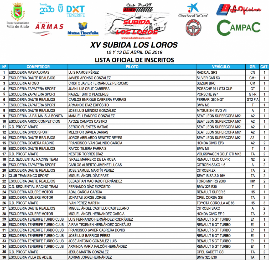 Lista de Inscritos: XV Subida Los Loros – Trofeo Naviera Armas Por Rafa León Última actualización: 10/04/2019 15:07 Compartir FacebookTwitterWhatsAppEmailTelegramLinkedin Publicamos la lista de Inscritos de la XV Subida Los Loros – Trofeo Naviera Armas Campeonato de TenerifeCanariasLos LorosSanta Cruz de TenerifeSubida a Los LorosTenerife Compartir