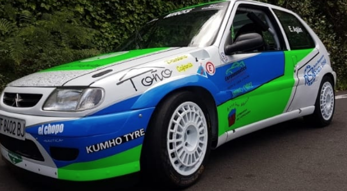 El piloto tinerfeño Eduardo Agüín (Citroën Saxo) ha desvelándola nueva decoración de su montura antes de viaja a La Palma, donde competirá este fin de semana.