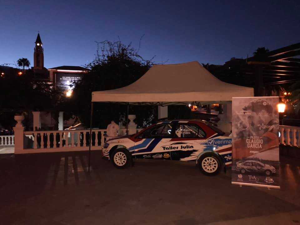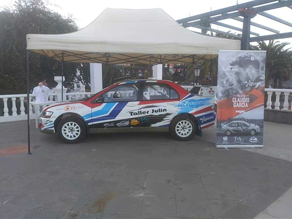 El rápido piloto palmero Claudio García Concepción, que en las pocas ocasiones que le hemos visto con su nuevo Mitsubishi Lancer Evo IX ha demostrado sus maneras, tiene su montura expuesta en El Paso (La Palma).