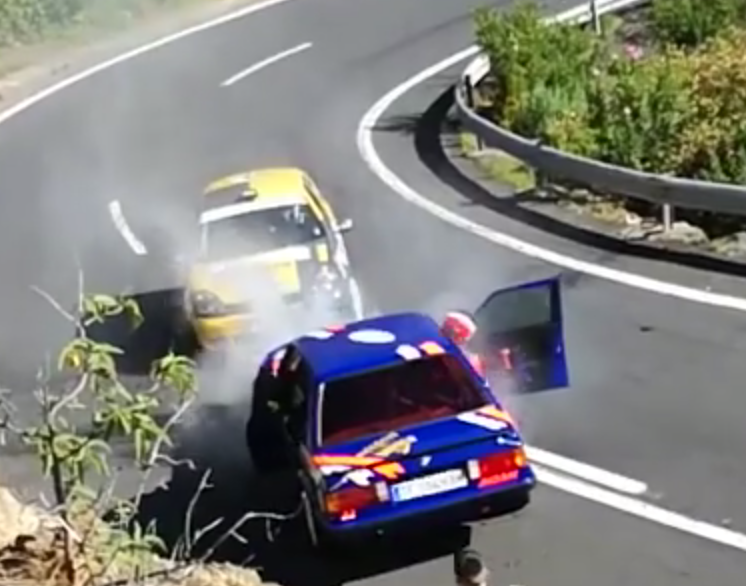Cuando le tocaba el turno a los equipos de Fórmula Rally, Samuel Domingo Rodríguez y Tomás Domingo (BMW 325 E30) eran los primeros en tomar la partida, con la mala suerte de hacer un trompo. Pero lo peor estaba por venir puesto que Enrique de La Cruz y Arunzu Quintero (Renault Clio Sport) eran los siguientes en venir, encontrándolos de frente y no pudiendo evitar el impacto frontal.