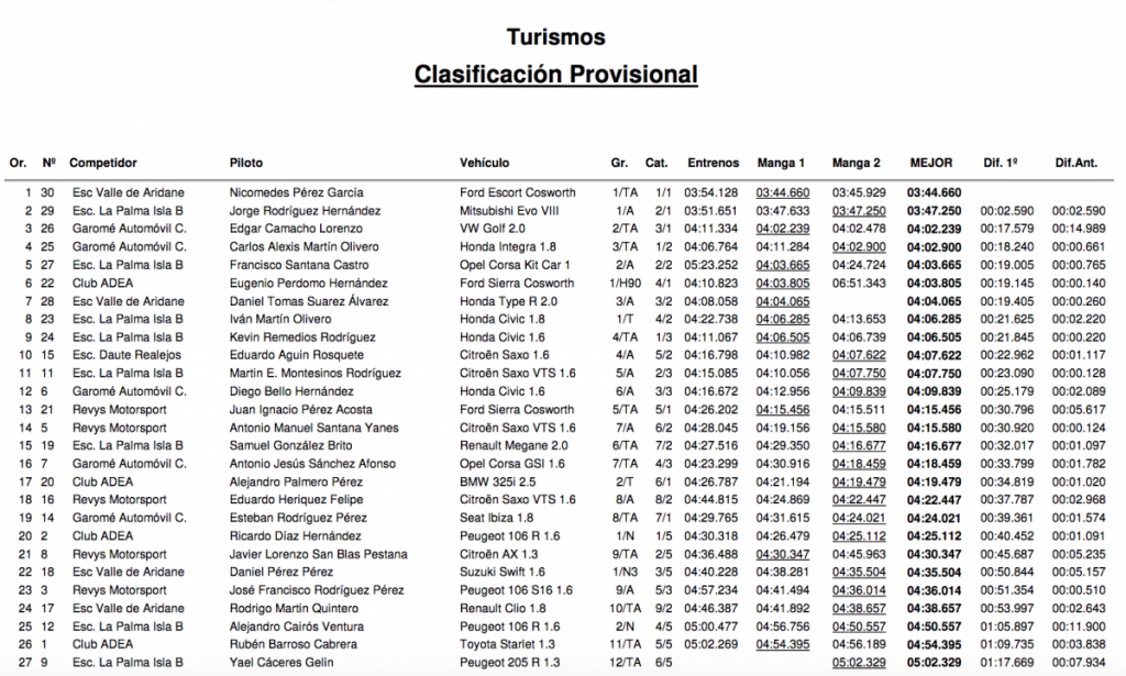 Edgar Camacho (VW Golf 2.0) ocuparía el tercer escalón del podio, a 17.759 del primer puesto y superando en solo 0.661 a Carlos Alexis Martín (Honda Integra 1.8), cuarto. Quinto sería Fran Santana (Opel Corsa Kit Car).