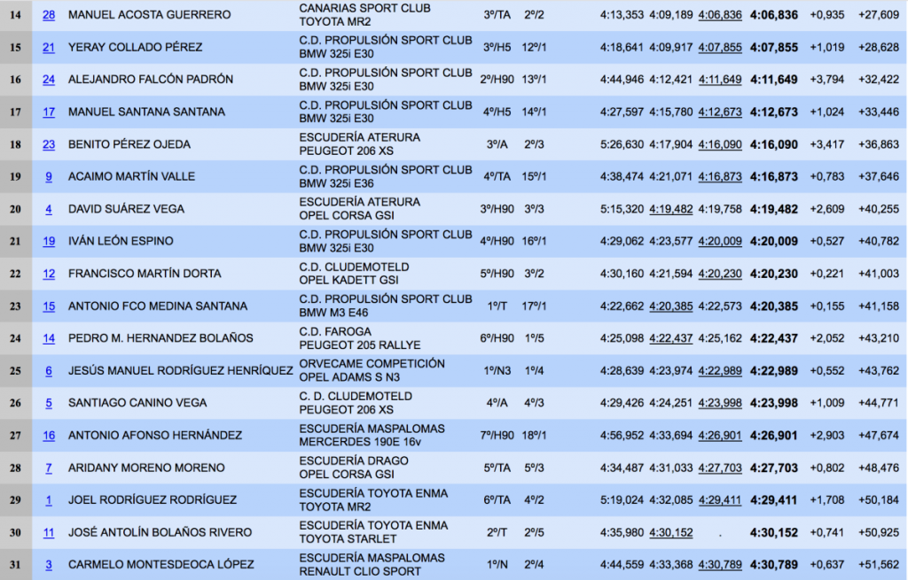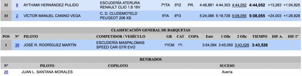 Tercero, a solo 0,493 del segundo puesto terminó Julio Martínez (Porsche 996), quedándose fuera del podio por 1,980 José María Ponce (Seat JTR 600), que acudía a la cita grancanaria para probar su montura después del temprano abandono en el Rally Villa de Santa Brígida y para preparar el Rally Islas Canarias.