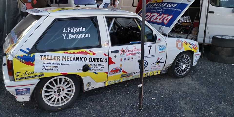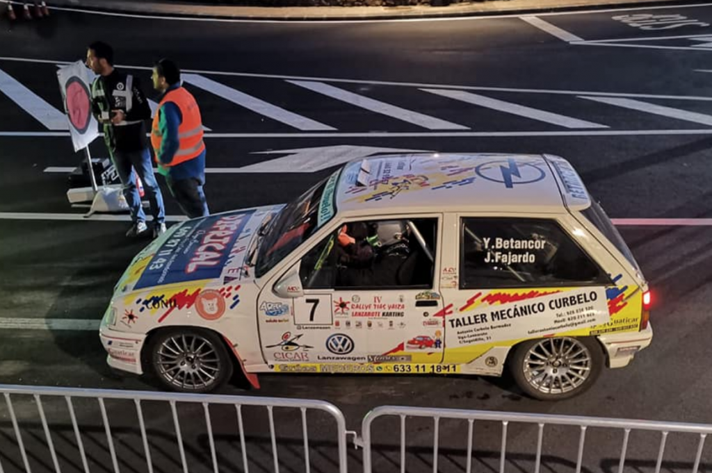 Los lanzaroteños Yacora Betancort y Javier Fajardo (Opel Corsa GSI) rodaban en el top 5 del Rally Tías-Yaiza, pero un reconocido error del piloto les impidió seguir disfrutando con un puesto tan alto. A pesar de ello, es una gozada ver como en cada ocasión que se le ve pasar lo da todo y le saca la quinta esencia a su montura.