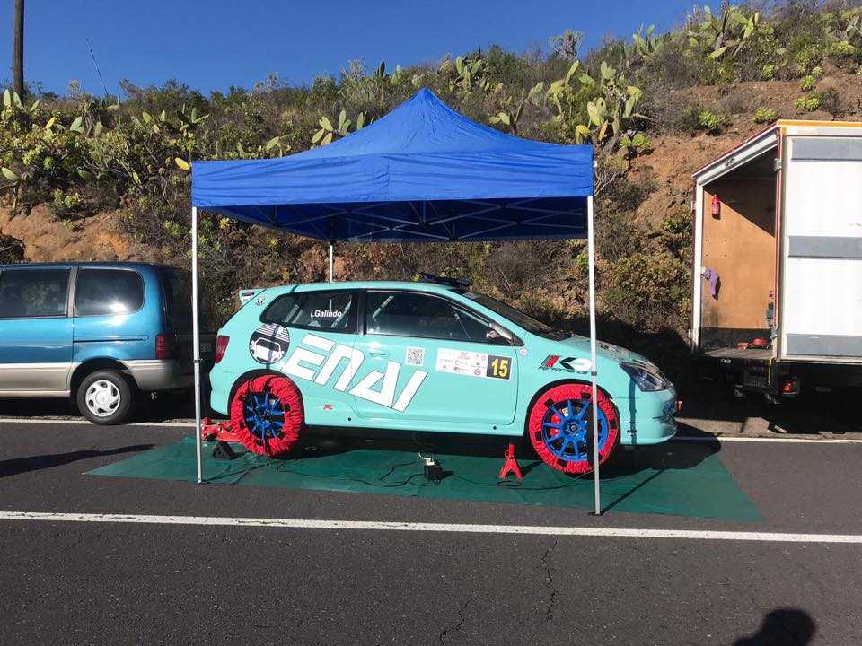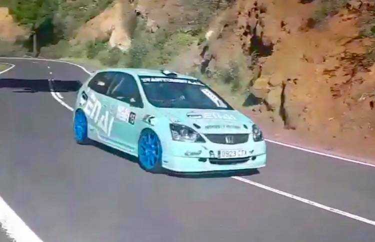 Iván Galindo y su Honda Civic Type R acudían a la Subida a Los Loros después de meses sin competir. Un problema mecánico les impidió tomar la segunda manga.