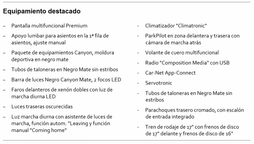 Las versiones de serie tendrán el color “copper orange” su carrocería, contando con múltiples detalles tanto exteriores como interiores con los emblemas “Canyon” situados en las puertas y en el portón trasero. Llama especialmente la atención el soporte del techo con cuatro faros adicionales, que es opcional, que cuando llega la noche hace que sea de día con su enorme potencia de iluminación. ¡Brutal!