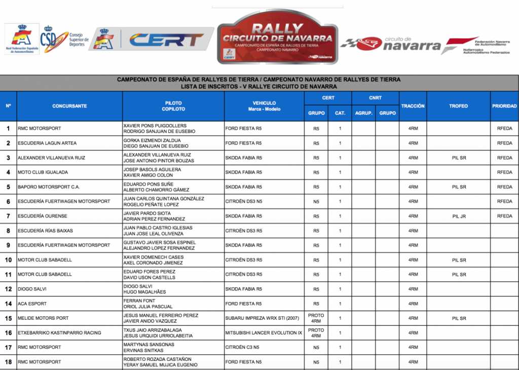 Entre los equipos nacionales destacan un par de cambios de montura. Xevi Pons dejará su Skoda Fabia R5 -que se encuentra de camino a Canarias para la siguiente cita del SCER- y saldrá en Navarra a los mandos de un Fiesta R5.