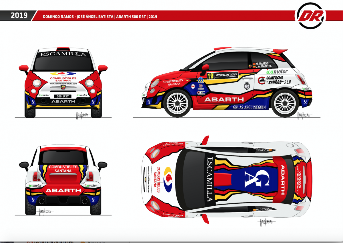 El Abarth 500 R3T de Domingo Ramos y José Ángel Batista estrena decoración, en la cual se verá reflejada la imagen de Abarth, Suministros Santana Domínguez, Icamotor – Concesionario Oficial Abarth en Gran Canaria, Fiat Professional, Mopar, Escamilla, Comercial Sanrob, Desguace El Cruce y Grúas Arguineguín.