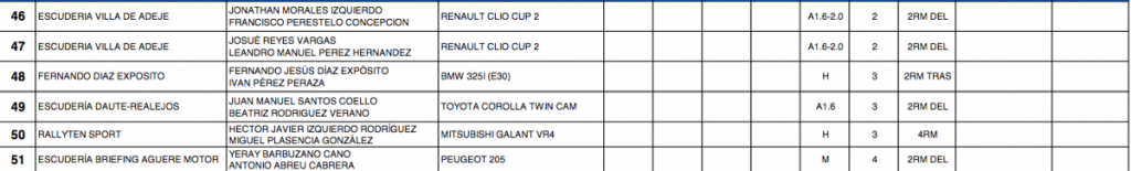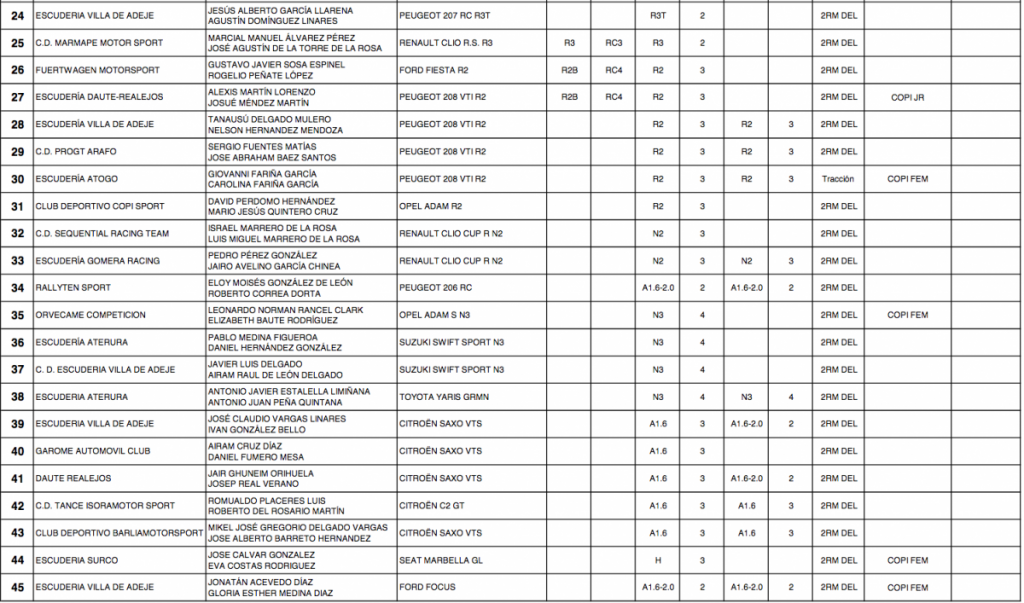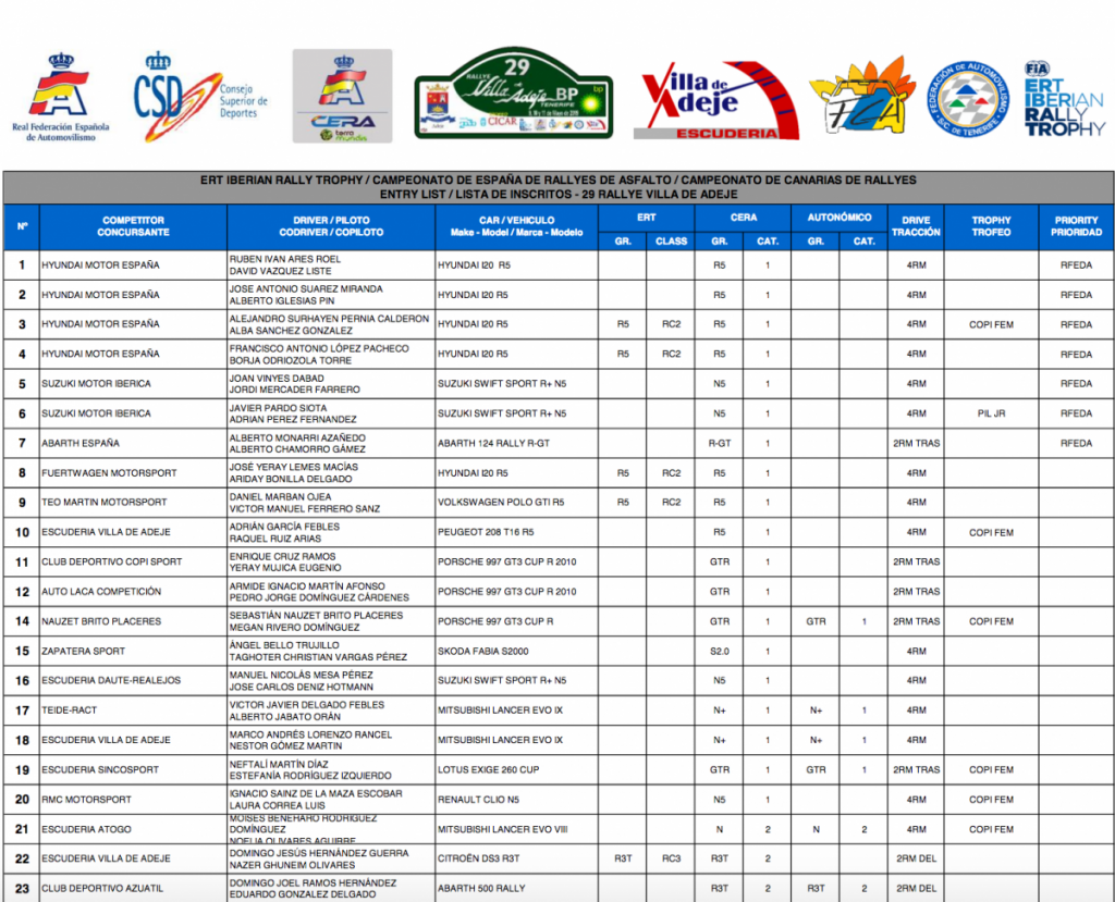 Publicamos la lista de inscritos del Rally Villa de Adeje, cita del Campeonato de España, Canarias y Tenerife de Rallys.