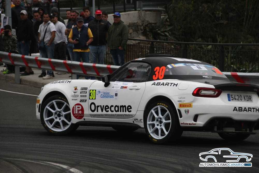 La pareja canaria compuesta por el palmero Carlos David García y el majorero Jordi Díaz vivía un Rally Islas Canarias diferente, puesto que tenían el premio de subirse a un potente Abarth 124 Rally.