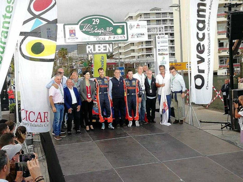 Al filo de las ocho de la noche María del Cristo Pérez, consejera de deportes del Cabildo Insular, y José Vicente Medina, en representación de la Real Federación Española de Automovilismo, daban el banderazo de salida a Iván Ares y David Vázquez, que cerraban el acto, que contó con representantes de la Federación Internacional de Automovilismo, Ayuntamiento de Adeje, BP y otras entidades públicas y privadas.