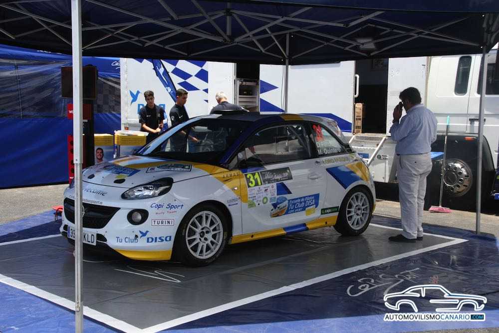 Junto a ellos, con la discreción y nervios propios de un debutante, aparecía por primera vez en la temporada y a los mandos del Opel Adam R2, con los colores de DISA, Orvecame, Loro Parque y Cajasiete, el flamante vencedor de la VI edición de la Escuela de Pilotos Tu Club DISA Copi Sport, David Perdomo.