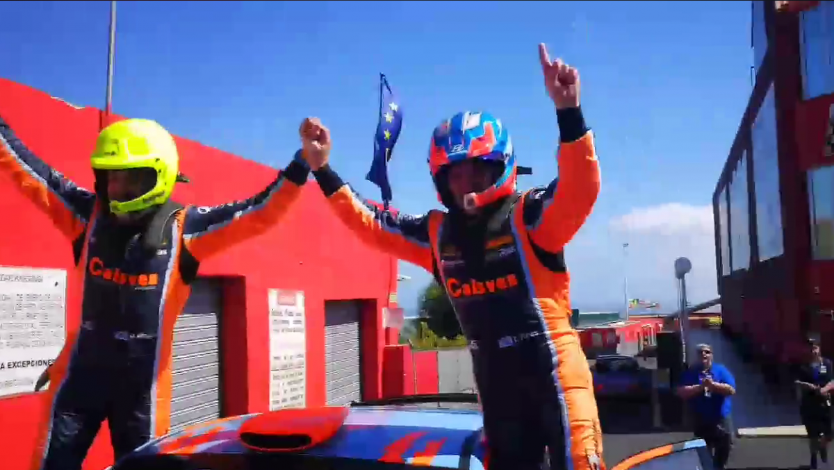 Rescatamos del perfil del piloto grancanario Manu Naranjo el momento donde Ares, Vázquez y su equipo celebran el triunfo en el Rally Villa de Adeje justo al pasar la meta.