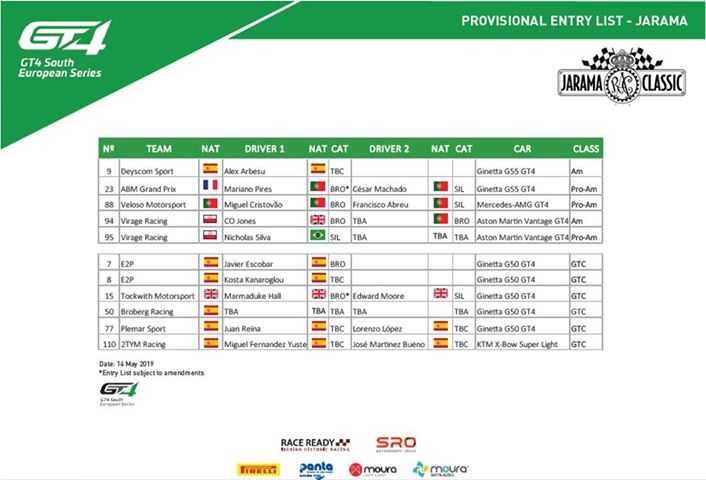 En Pro-Am, el Mercedes-AMG GT4 de Veloso Motorsport – Miguel Cristóvão / Francisco Abreu – tendrá, como mínimo, la oposición de uno de los novísimos Aston Martin Vantage GT4 de Virage Racing y de un competitivo Ginetta G55 GT4 de ABM Grand Prix, que será compartido por la dupla portuguesa formada por César Machado / Mariano Pires.