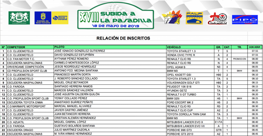 Lista de inscritos y Medias RS de la Subida a La Pasadilla Por Rafa León Última actualización: 16/05/2019 12:14 Compartir FacebookTwitterWhatsAppEmailTelegramLinkedin Publicamos la lista de inscritos y Medias RS de la Subida a La Pasadilla (Gran Canaria). Campeonato de Las PalmasGran CanariaLa PasadillaLas Palmas Compartir