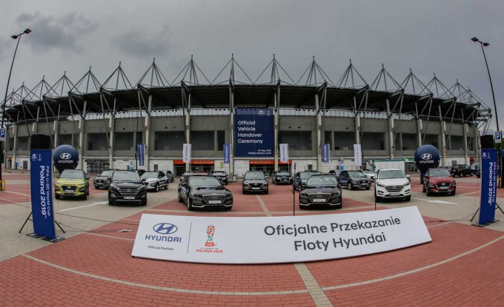 La ceremonia oficial de entrega de vehículos se llevó a cabo el 13 de mayo frente al estadio Lodz Widzew, y contó con la presencia de la FIFA, PZPN, Hyundai Motor Poland, concesionarios de Hyundai Lodz y varios medios de comunicación. Sebastian Cyborowski, Director General de Hyundai Motor Poland, presentó la flota de vehículos a los delegados de FIFA y PZPN.