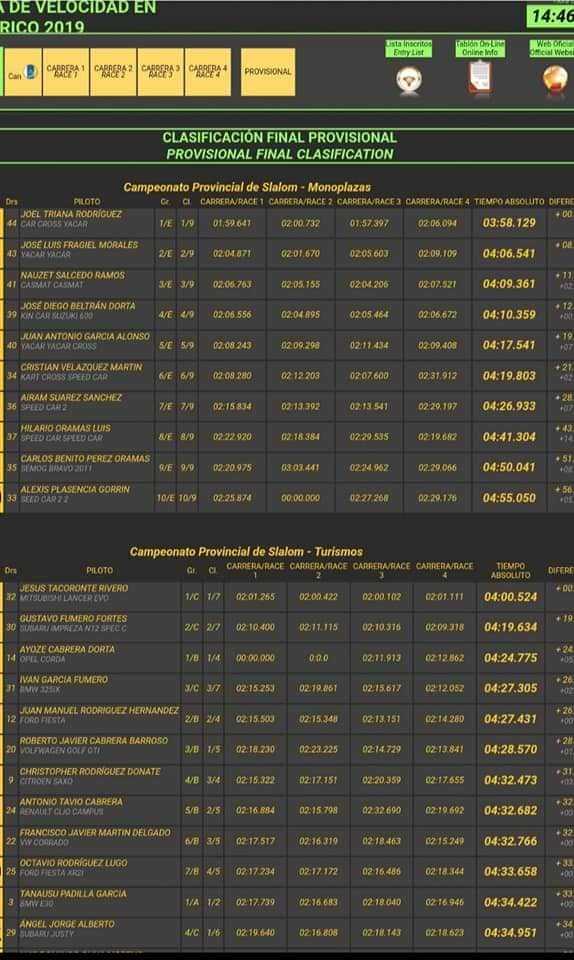 Y la disculpa es ya están corregidos. El único tiempo que modifican en toda la carrera es el mío en la última manga. Da mucho que pensar, Escudería Arico.